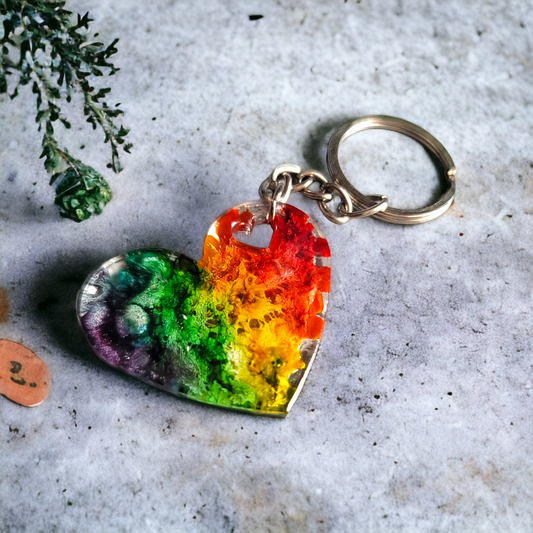 Customizable Heart Keychain - Rainbow Heart